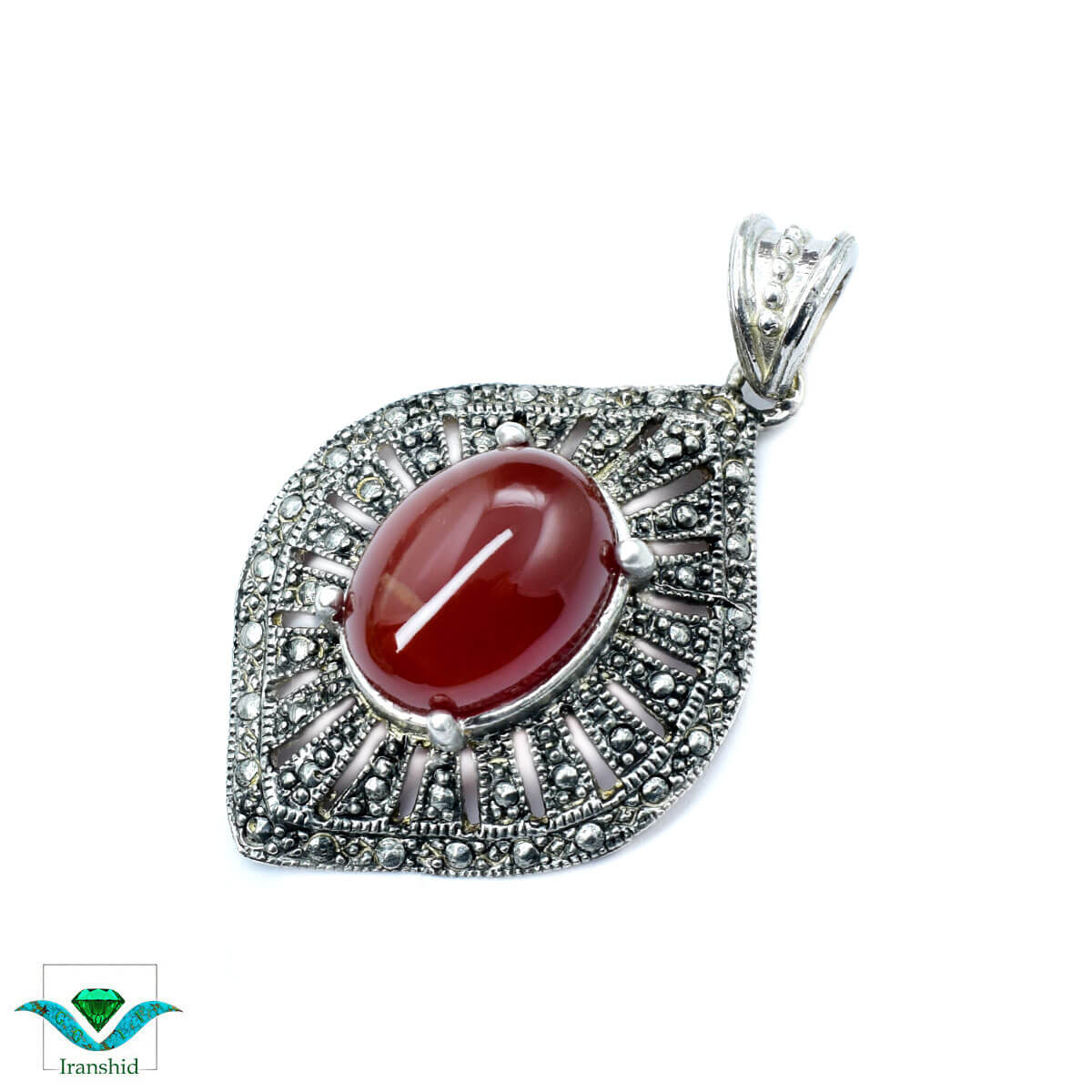 مدال گردنبند عقیق مناسب بانوان جنس نقره وزن 7 گرم نوع آبکاری سیاه قلم – رادیوم